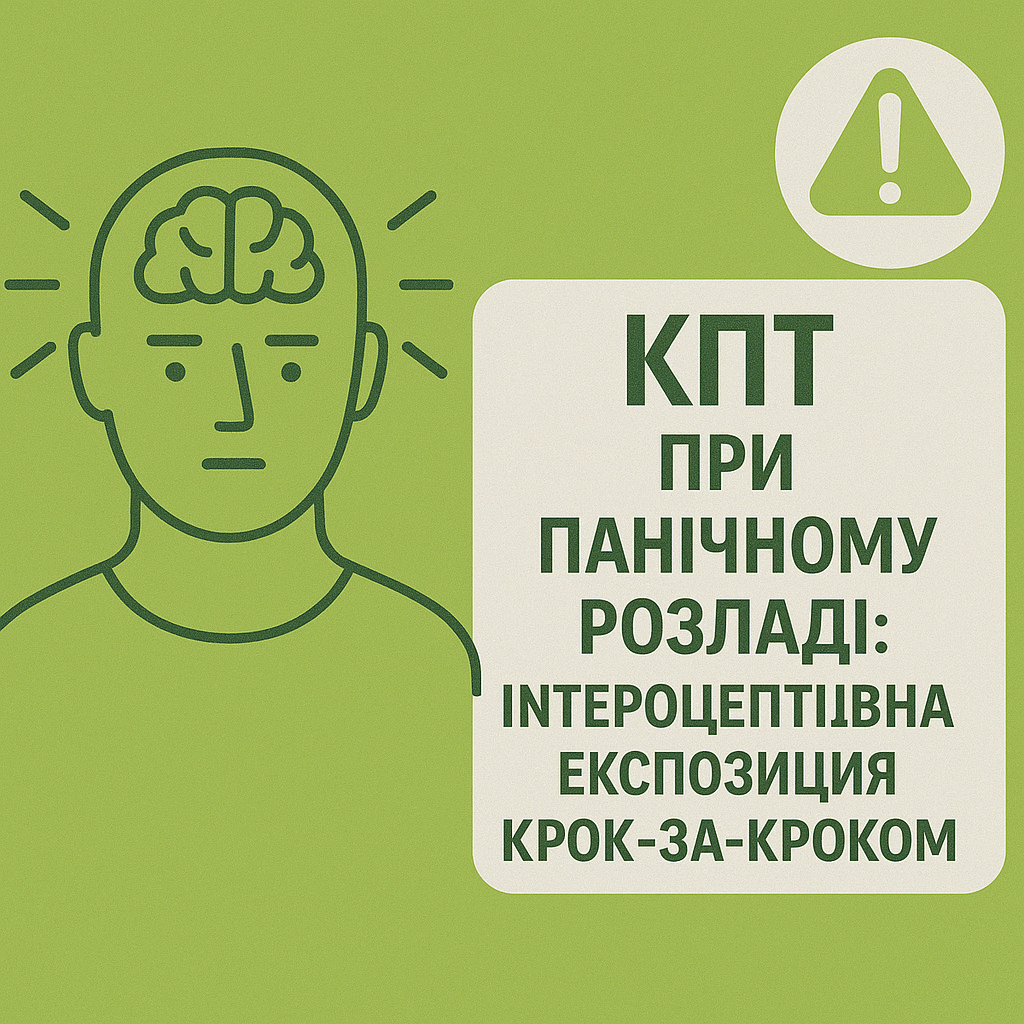 Найкращі результати дає когнітивно-поведінкова терапія з елементами експозиції. Згідно з протоколами NICE (2023) та APA (2020), КПТ — перша лінія лікування при панічному розладі. NICE CG113, 2023 APA Clinical Practice Guideline for the Treatment of Anxiety Disorders, 2020