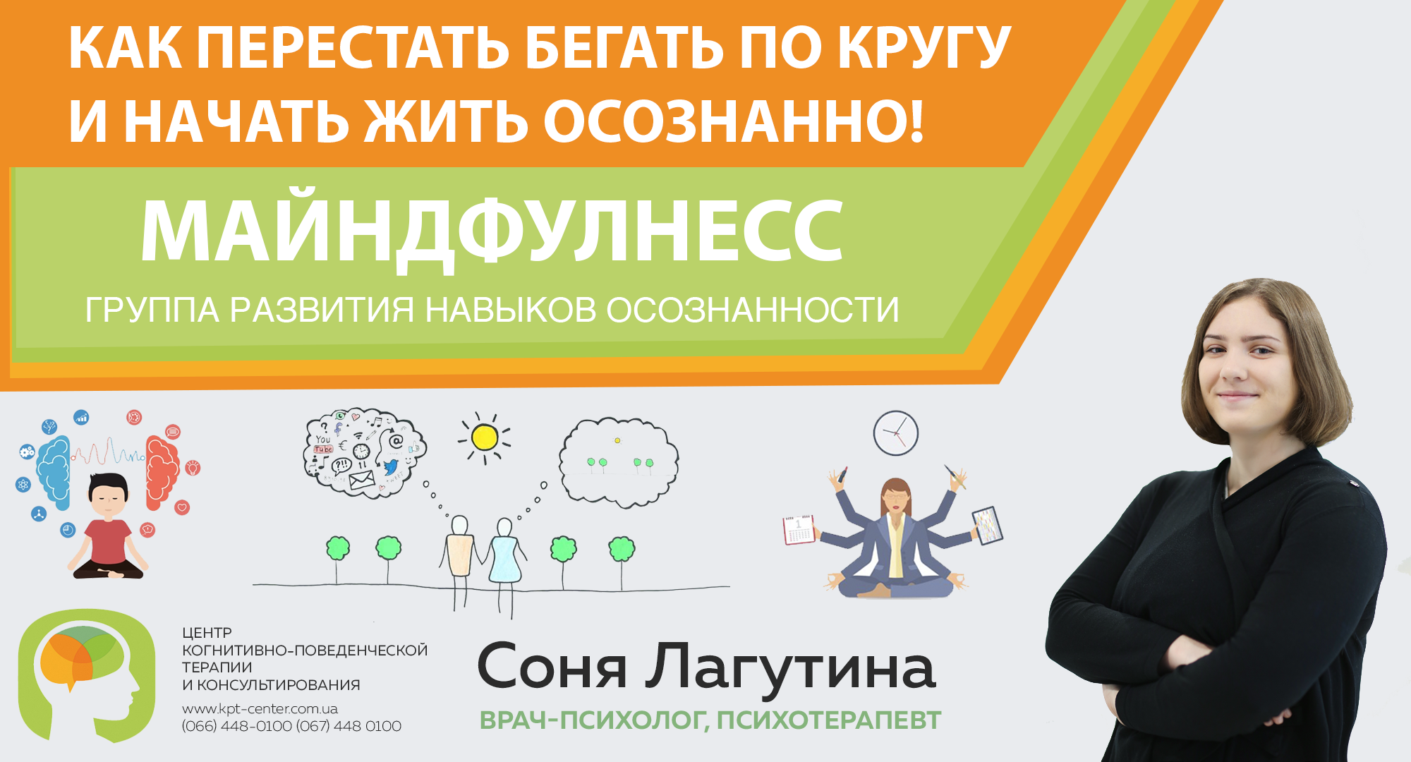 Групу розвитку навичок усвідомленості проводить фахівець Центру когнітивно-поведінкової терапії та консультування Соня Лагутіна, лікар-психолог, психотерапевт.