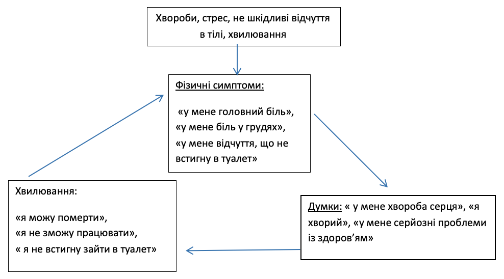Багатьох із нас періодично хвилює стан здоров’я. Особливо відчутно це тоді, коли з’являються різні фізичні (тілесні) прояви. У більшості випадків ці побоювання швидко проходять. Проте деякі люди можуть відчувати тривогу і хвилюватися доволі довго, іноді вважаючи, що вони мають якесь серйозне захворювання. Цей страх може суттєво впливає на якість їх життя. Інколи навіть викликати напади паніки, почуття безпорадності.